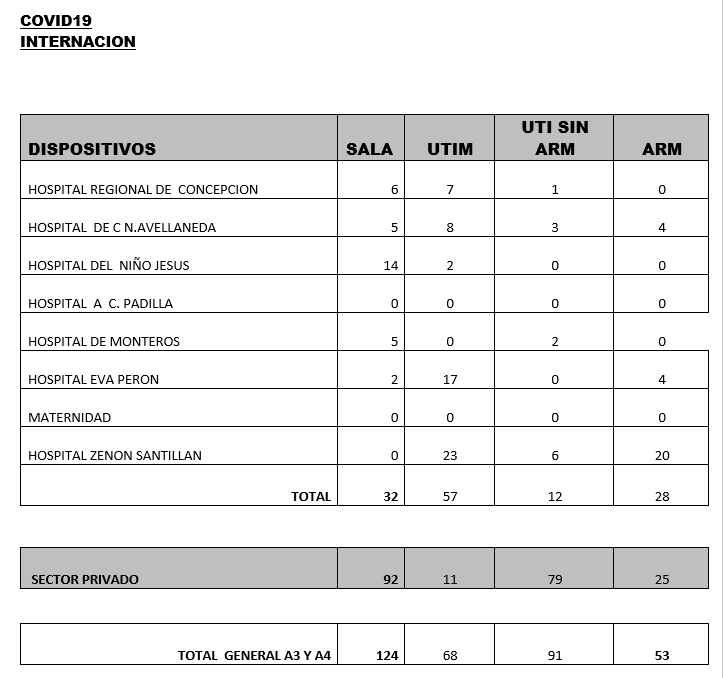 Según los últimos datos sobre internaciones brindados por el Ministerio de Salud provincial, encabezado por la doctora Rossana Chahla, son 336 los tucumanos con Coronavirus internados en hospitales y sanatorios: 129 en el sector público y 207 en el privado. Por otro lado, se indica que son 53 los pacientes con asistencia respiratoria mecánica (ARM).