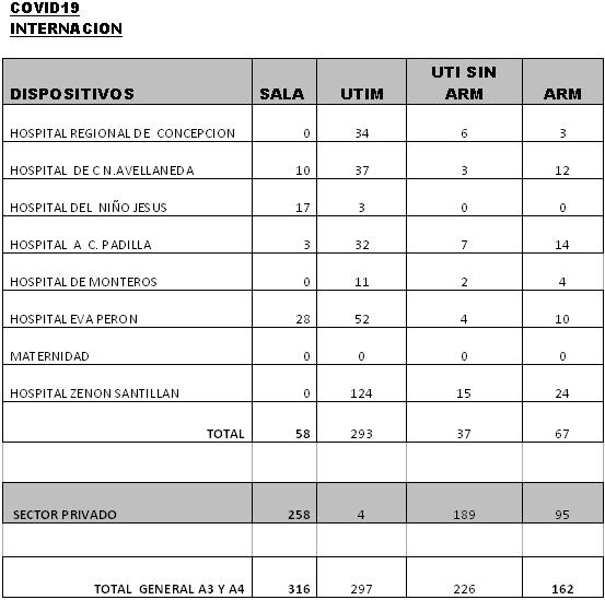 Asimismo se informa el fallecimiento de 13 pacientes, de los cuales 6 estaban siendo asistidos en el sector público y 7 en el privado: -Una mujer de 40 años con comorbilidades, internada en terapia intensiva del sector privado con neumonía por Covid-19.