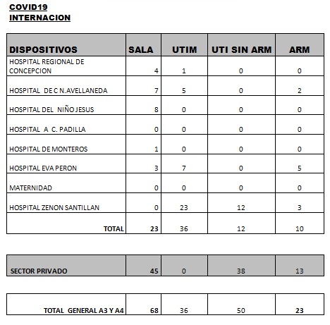 Según los últimos datos sobre internaciones brindados por el Ministerio de Salud provincial, encabezado por la doctora Rossana Chahla, son 177 los tucumanos con Coronavirus internados en hospitales y sanatorios: 81 en el sector público y 96 en el privado. Por otro lado, se indica que son 23 los pacientes con asistencia respiratoria mecánica (ARM). El total de pacientes dados de alta a la fecha es de 73.751, mientras que los casos activos son 1.722.
