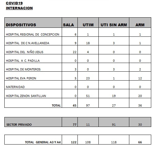 Asimismo se informa el fallecimiento de seis pacientes con Coronavirus en las últimas 24 horas:-Una mujer de 50 años con comorbilidades, internado en terapia intensiva del sector público, en asistencia respiratoria mecánica, con neumonía por Covid-19. -Un hombre de 56 años con comorbilidades, internado en terapia intensiva del sector público, en asistencia respiratoria mecánica, con neumonía por Covid-19. -Una mujer de 73 años con comorbilidades, internado en el sector privado, con neumonía por Covid-19.
