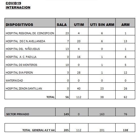 Asimismo, se informa el fallecimiento de 12 pacientes en las últimas 24 horas: -Un hombre de 73 años con comorbilidades, internado en unidad de terapia intensiva, en el sector privado, con neumonía por Covid-19. -Una mujer de 86 años con comorbilidades, internada en unidad de terapia intensiva, con asistencia respiratoria mecánica, en el sector privado, con neumonía por Covid-19. -Un hombre de 53 años con comorbilidades, internado en unidad de terapia intensiva, con asistencia respiratoria mecánica, en el sector público, con neumonía por Covid-19. -Un hombre de 77 años con comorbilidades, internado en unidad de terapia intensiva, con asistencia respiratoria mecánica, en el sector público, con neumonía por Covid-19. -Un hombre de 63 años sin comorbilidades, internado en unidad de terapia intensiva, con asistencia respiratoria mecánica, en el sector público, con neumonía por Covid-19.
