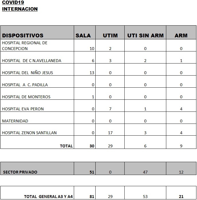 Asimismo se informa el fallecimiento de un paciente que estaba siendo asistido en el sector privado: -Una mujer de 57 años con comorbilidades, internada en la terapia intensiva del sector privado, con asistencia respiratoria mecánica, con neumonía por Covid-19.