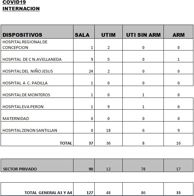 Graneros | 235Según los últimos datos sobre internaciones brindados por el Ministerio de Salud provincial, 294 tucumanos permanecen internados con Covid-19: 97 en el sector público y 197 en el privado. Asimismo, la cartera que conduce la ministra Rossana Chahla informó que 68.819 pacientes fueron dados de alta a la fecha.