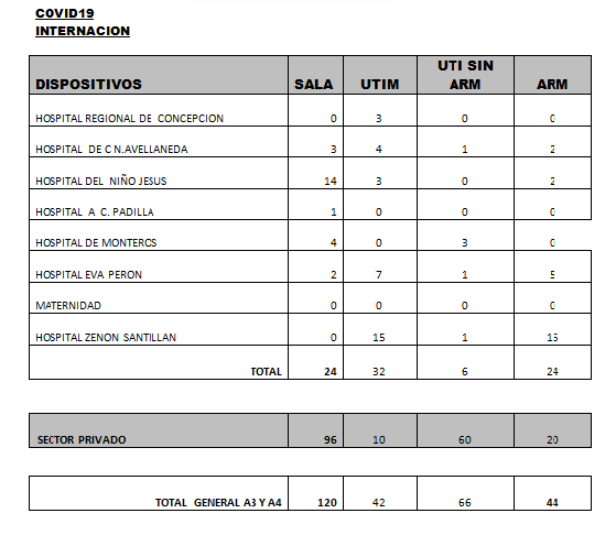 Asimismo, se informa el fallecimiento de 2 pacientes con Coronavirus en las últimas 24 horas: -Un hombre de 92 años con comorbilidades, internado en terapia intensiva del sector público, con asistencia respiratoria mecánica, con neumonía por Covid-19. -Un hombre de 38 años con comorbilidades, internado en terapia intensiva del sector público, con asistencia respiratoria mecánica, con neumonía por Covid-19.
