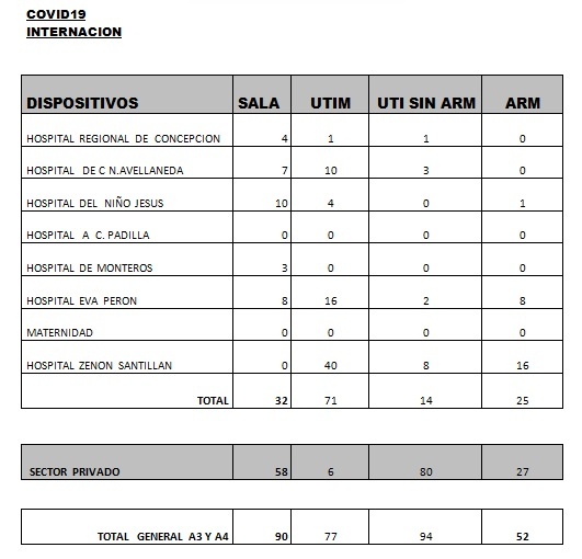 Asimismo se informa el fallecimiento de 2 pacientes, los cuales estaban siendo asistido en el sector privado:-Un hombre de 76 años con comorbilidades, internado en el sector privado, con neumonía por Covid-19. -Un hombre de 64 años con comorbilidades, internado en terapia intensiva del sector privado, con neumonía por Covid-19.