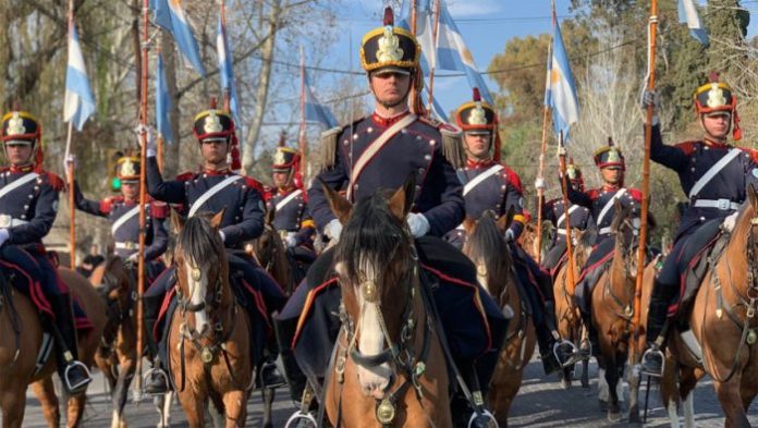 La grabación sigue con el niño encarnando al General y arengando a sus tropas: “Señores los he convocado a defender los que nos pertenece. Formaremos el ejercito de Granaderos a Caballo. Lucharemos por la libertad y el futuro de los hijos de nuestros hijos. Seamos libres que lo demás no importa nada… ¡Viva la Patria!”.