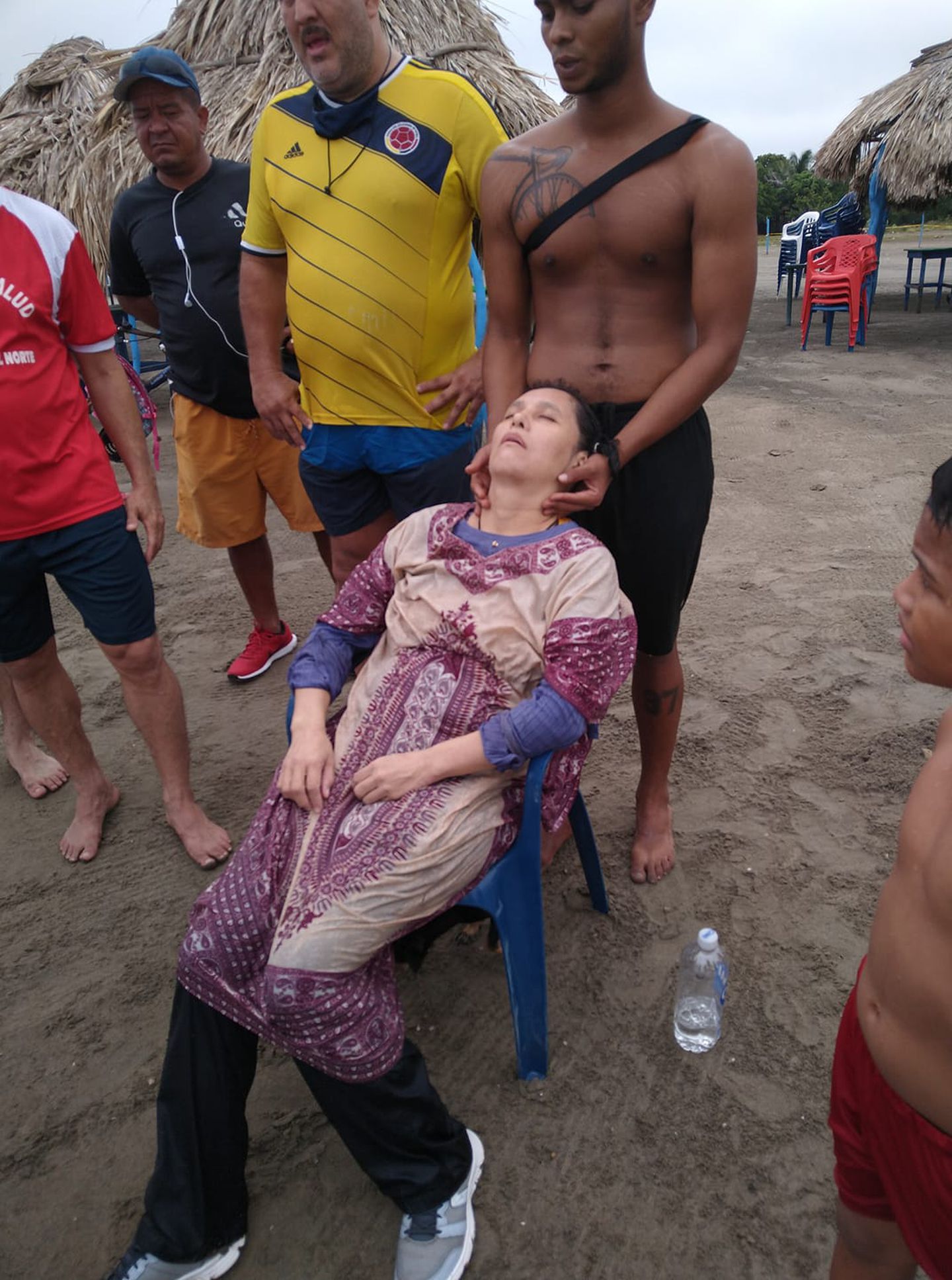 En otro video, se ve como la bajan entre dos en la playa y la colocan en una silla, mientras piden ayuda. Luego, entre varios jóvenes la levantan y ponen en un auto, para llevarla a un centro médico.