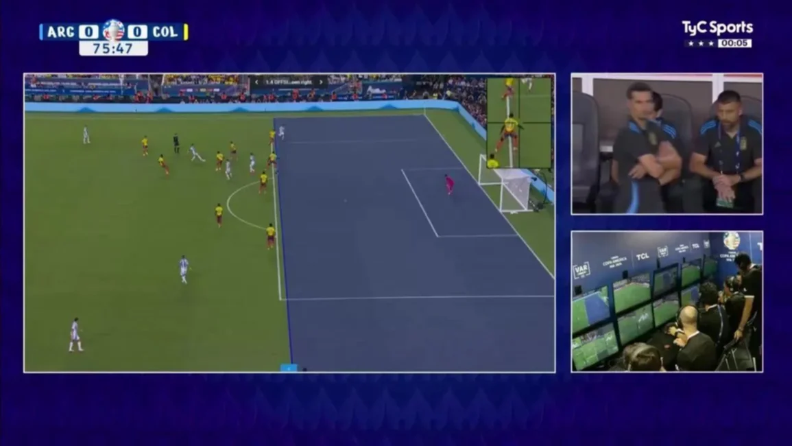 Tras un buen pase de Enzo Fernández al desmarque de Nicolás Tagliafico, el lateral izquierdo de la Selección encontraba un pase a Nicolás González que marcaba el gol, pero el ex jugador de Banfield, se encontraba adelantado y la paridad sigue en la final de la Copa América.